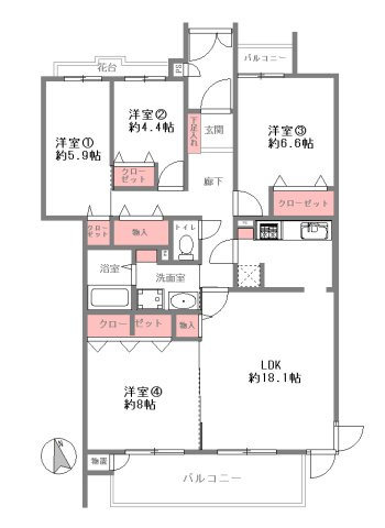 | 専有面積 | 99.96㎡ | バルコニー面積 | 10.72㎡ |